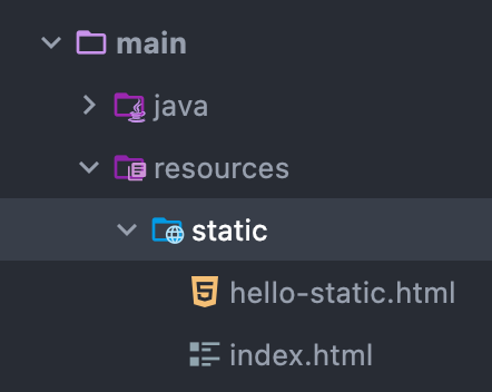일반적으로 주소창에 주소를 입력하고 들어가면 나오는 첫 페이지를 welcome page라 부른다. 오른쪽 그림과 같이 resources/static에 index.html 파일을 생성해준다. 그러면 스프링 자체에서 resources/static/index.html 파일을 welcome page로 사용해준다. 탑재되어 있는 기능이라고 하니 파일 위치와 이름을 동일하게 작성해야 한다.