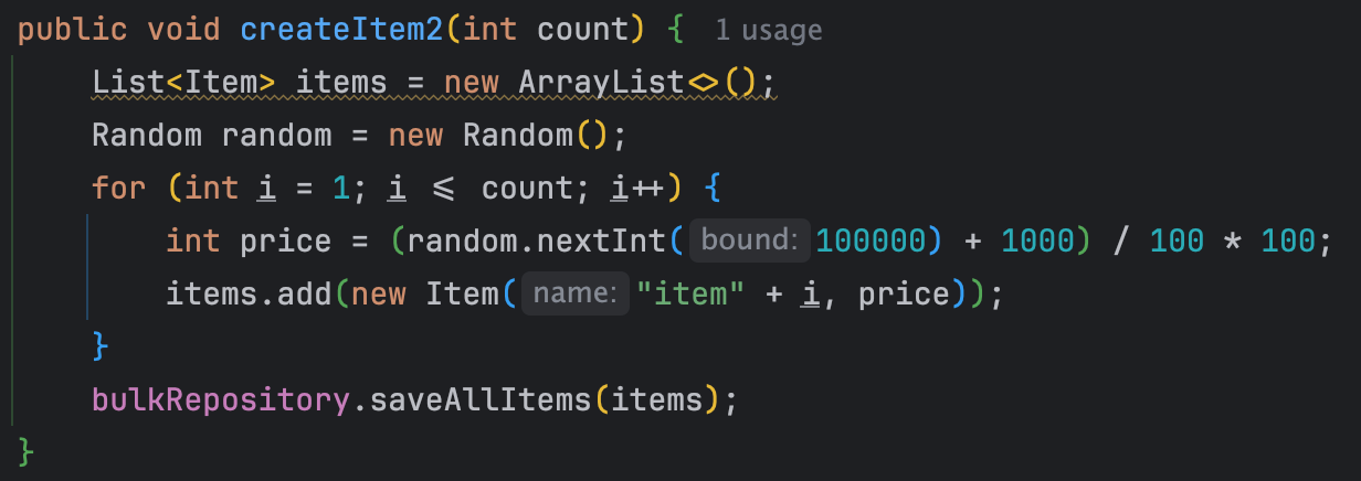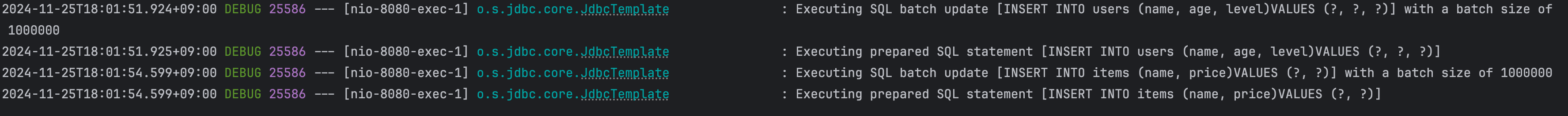JDBC는 java와 RDBMS의 상호 작용에 사용되는 표준 API로 DB에 더 가까운 레벨에서 작업을 할 수 있게 도와준다. 이를 활용해 BulkRepository를 구성한 후 위에서 했던 200만 개 데이터 INSERT를 다시 진행해 보았다.